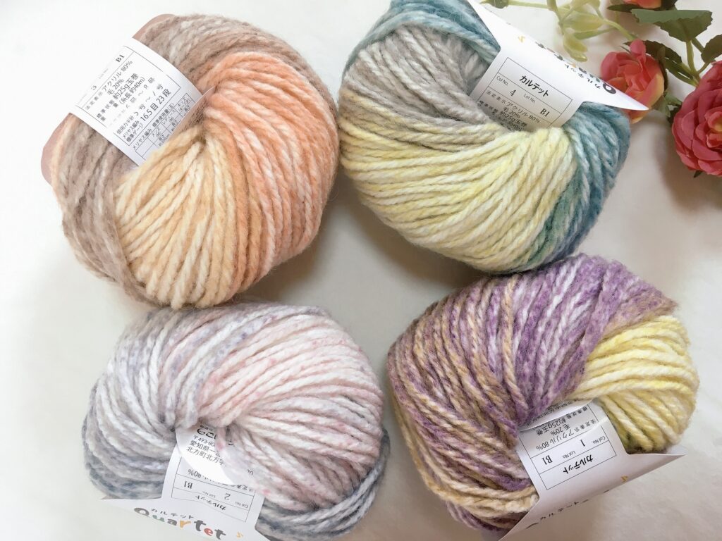 セリアの秋冬毛糸2021年のカルテットです( *´艸`)